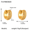 316L Stainless Steel 18K Gold Plated Zircon Inlaid Quilted Round Huggie Hoop Earrings