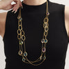 316L Stainless Steel Faceted Glass & Hollow Circle Long Statement Necklace