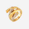 316L Stainless Steel irregular geometric open ring designed for modern, fashion-forward retail collections. This statement ring features a layered wrap structure accented with high-quality cubic zirconia, delivering a bold yet refined visual balance.