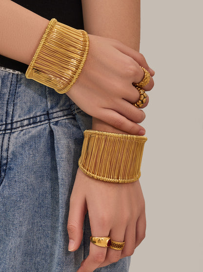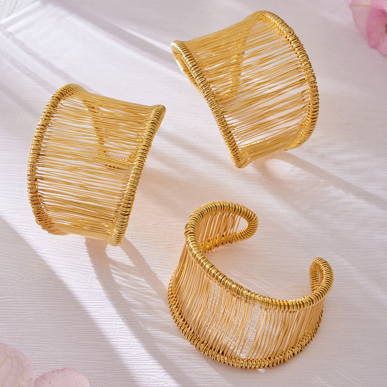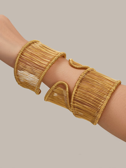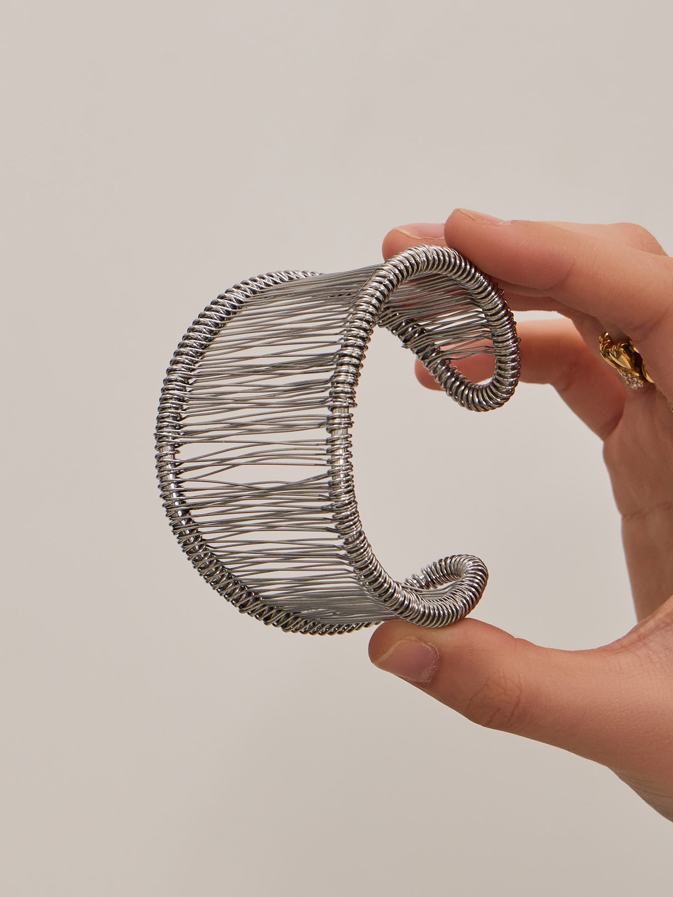 Elevate your collection with this bold wide wire cuff bracelet crafted from durable 316L stainless steel. Designed with a distinctive wrapped-wire structure, this open bangle combines modern sculptural aesthetics with long-lasting performance, making it an ideal choice for boutique retailers and wholesale jewelry buyers.