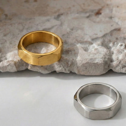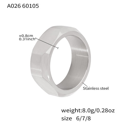 Wholesale 316L stainless steel geometric hexagon nut ring. Waterproof and tarnish resistant. Unisex design.