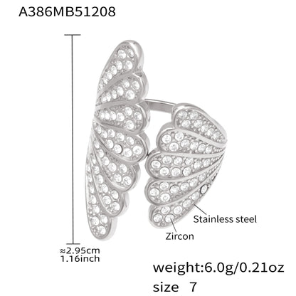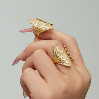 This wholesale shell-inspired open ring is crafted from premium 316L stainless steel and finished with advanced 18K PVD gold plating. Designed with a sculptural fan shell silhouette and full zircon pavé setting, it delivers a refined statement look while maintaining durability for daily wear.