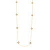 This elegant long necklace features multiple cubic zirconia flower stations spaced along a fine stainless steel chain. Designed for effortless layering and statement styling, it delivers a refined luxury look suitable for boutiques and online retailers.